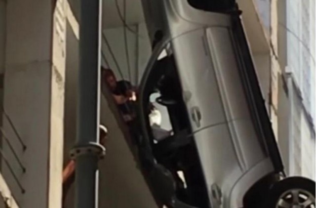 参照・画像出典:Mirror/Terrifying moment man narrowly avoids deadly fall after car dangles off nine-storey building