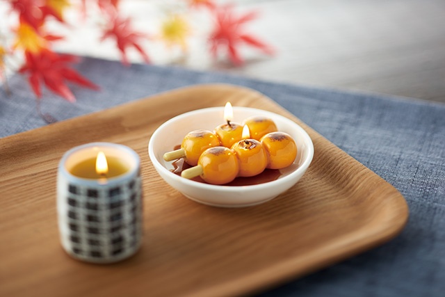 今回新登場したのはみたらし団子を模したキャンドル「みたらし団子キャンドル」。これまでは仏壇に団子をお供えてもしばらくするとハエが寄ってきたり乾燥してしまう…。そこで団子をキャンドルにしちゃいました!といった発想の商品(笑