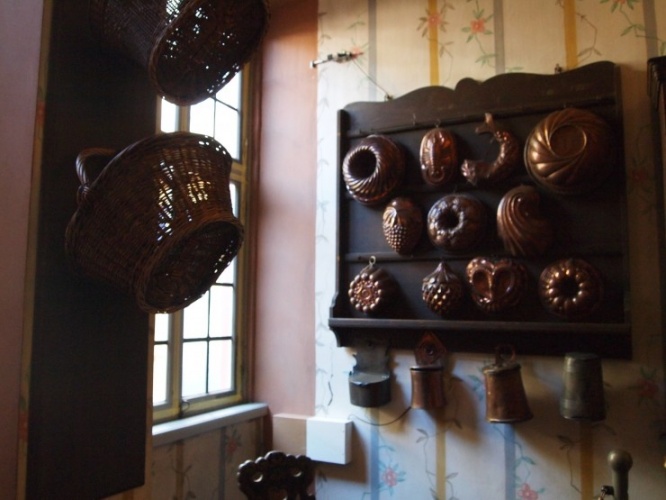 中でもキッチンの作りは現代の物とは全く異なり興味深いですよ。壁に掛けられているケーキの型がとても可愛らしいですね。