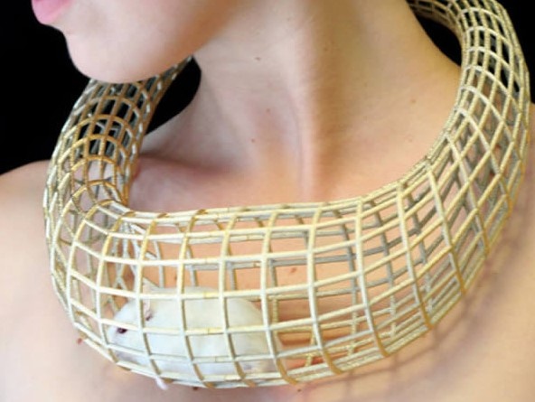 2 デザイン専攻の学生が制作した「生きた毛皮」ネックレス。首元で生き物がカサカサ動いているのって・・・。