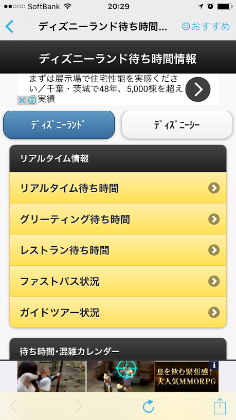 待ち時間情報では、アトラクションのリアルタイムの待ち時間だけでなく、レストランの待ち時間やファストパス状況なども分かるので、とても便利です♪