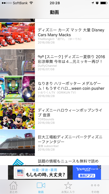 「動画」画面では、ディズニーに関するさまざまな動画が一覧で表示されています。