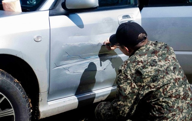 トラックにぶつけられた愛車の傷を利用したアート!?