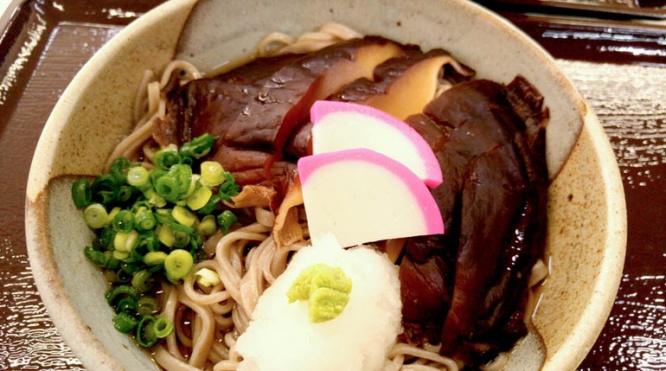 お腹も減ったところで、お昼ご飯は境内にある秋葉茶屋でしいたけそばを。