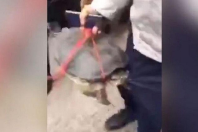 参照・画像出典:Mirror/Man gets bitten in the groin by hungry turtle that won’t let go in painful looking footage