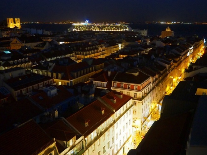 海かと思うほど雄大な流れのテージョ川を豪華客船がゆったりと進んでいく様子は、港町として発展してきたリスボンらしさが感じられる風景です。