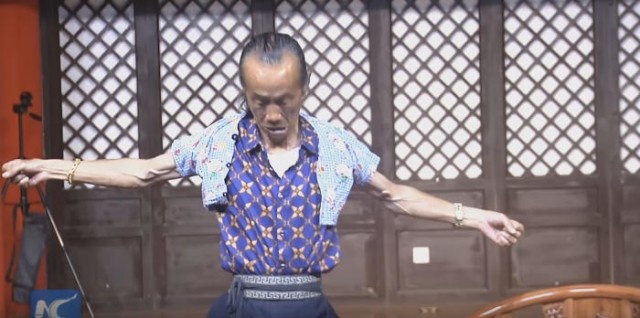 この老人、只者じゃねえ! 幼児服を着用する演芸でえげつない動きを魅せる!