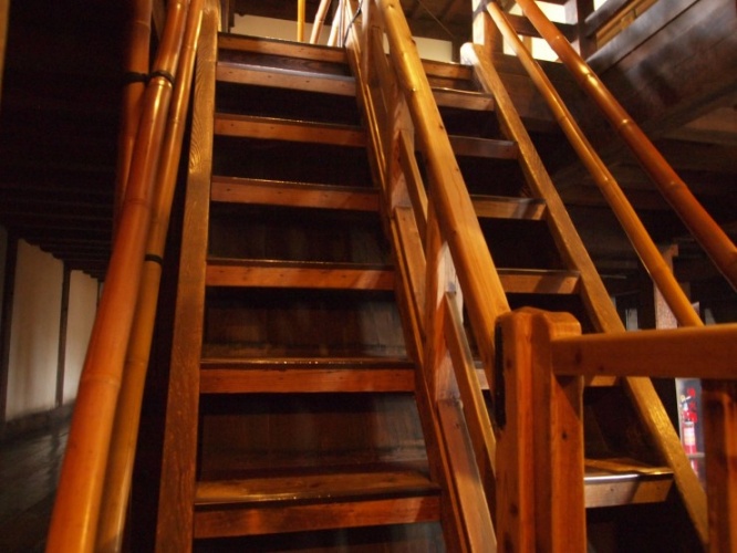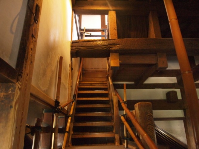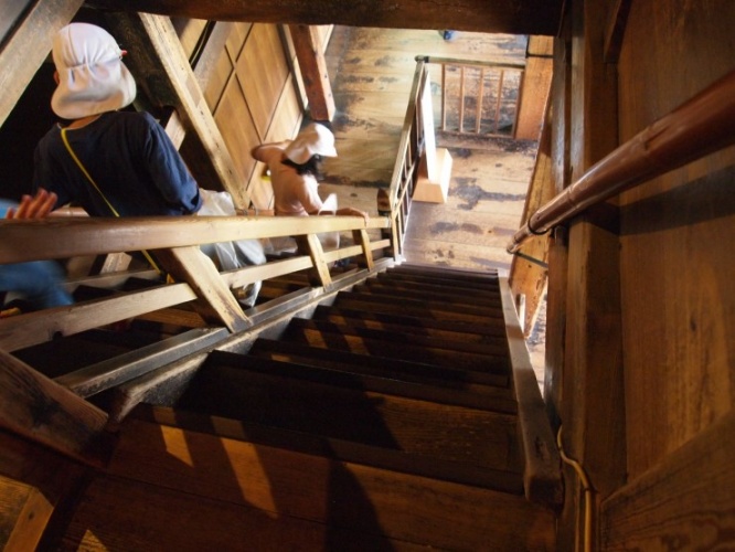 また城の中の階段は急な物が多く、特に4階から5階にかけての階段はなんと傾斜が61度もあります。5階から6階にかけての階段もまた急です。誤って滑り落ちたり、頭上の梁に頭をぶつけないように注意しながら登りましょう。