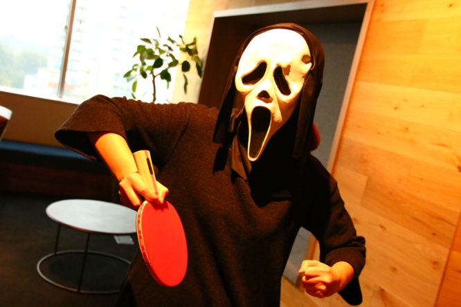 映画『ミュージアム』カエル男が編集部に襲来! 『スクリーム』のアイツもやってきて殺人鬼同士のハロウィン卓球対決が勃発! (2/5ページ)