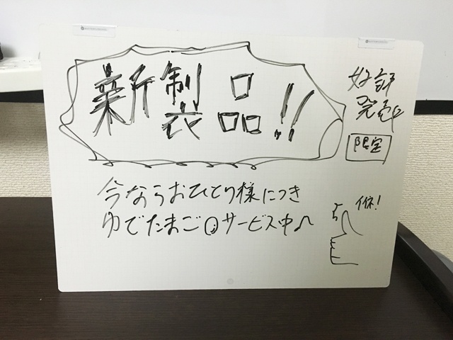 ルーズリーフのように自立させて看板っぽく使ってもよし。ラフに書いてもそれっぽく見えるというのもホワイトボードの美点でもありますね。