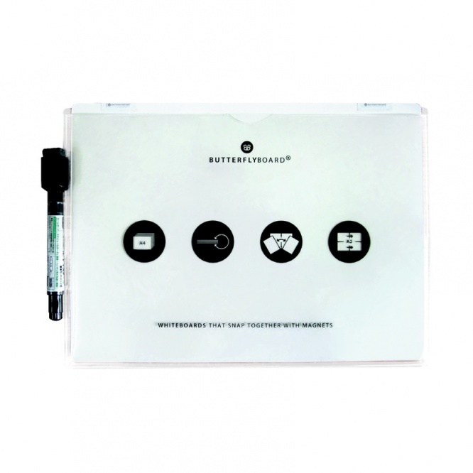 そんなホワイトボードを手軽に持ち運べるようにしつつ、創造性もアップさせたのがこの「バタフライボード」。