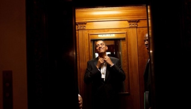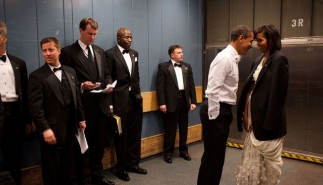 2009年1月20日の大統領就任式は、オバマ大統領にとっては忘れられない日だ。大統領就任パーティーへ向かうエレベーターの中、ミシェル夫人と顔を寄せ合う二人。素敵なワンシーンだ。