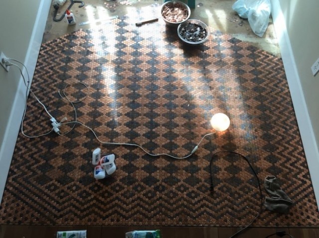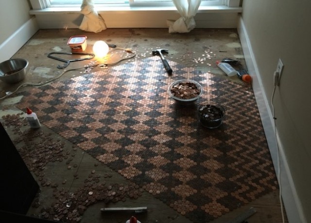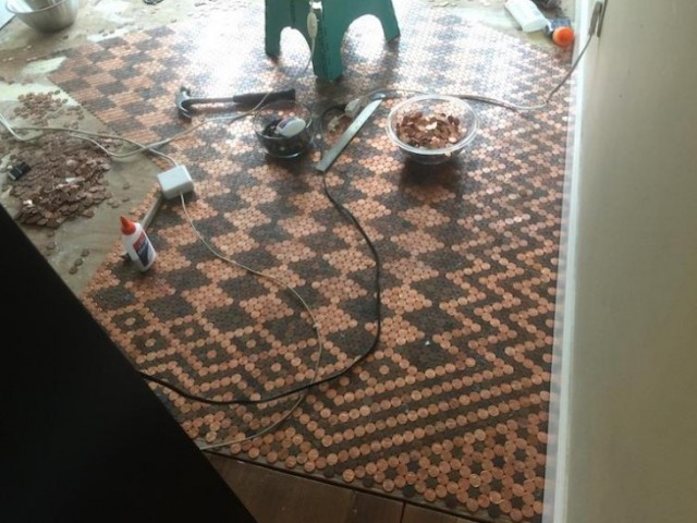 DIY愛好家のトーニャ・トーナーさんは1ペニー硬貨を1万3000枚(約130ドル程度)を集め、これらを美しい床の装飾にしてしまったという。