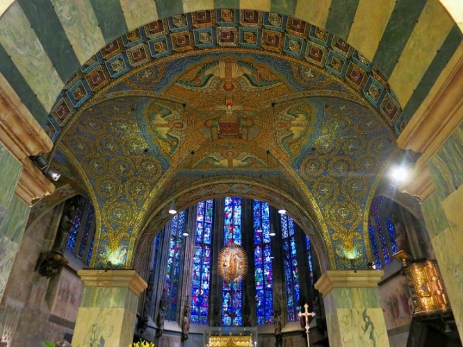大聖堂内部は、古典主義やビザンティン様式、ドイツ・ロマネスク様式など、東西ローマ帝国の建築様式が融合した空間となっています。