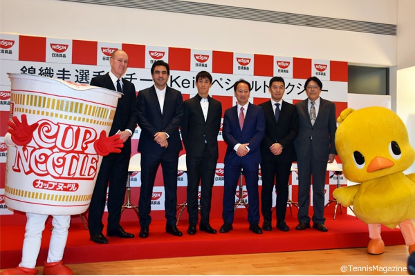 11月27日、横浜市内にあるカップヌードルミュージアムで“チームKEI”(錦織圭=日清食品、マイケル・チャンコーチ、ダンテ・ボッティーニコーチ、中尾公一トレーナー、オリバー・バン リンドックマネジャー)によるトークショーが行われた。