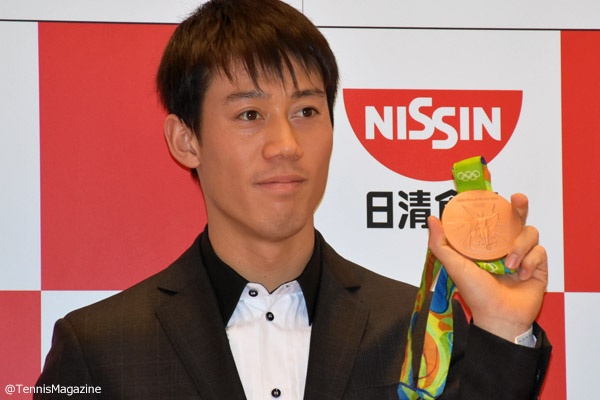 リオデジャネイロ・オリンピックで獲得した銅メダルを披露する錦織