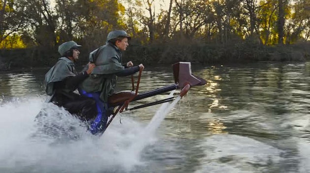 水の上を水圧で浮上する、空飛ぶバイク“ジェットベイター”を改造し、『エピソード6/ジェダイの帰還』のスピーダー・バイクを再現してしまった、超クールな映像である。