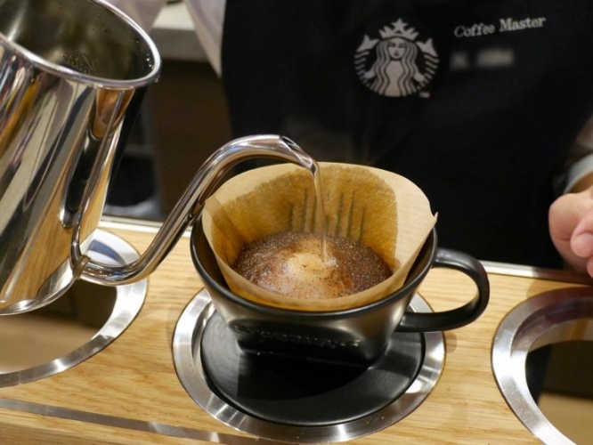 スターバックスリザーブのコーヒーは、「Clover(クローバー)」という抽出機、「コーヒープレス」、そして今年から日本のスターバックスで始まったプアオーバー(ハンドドリップ)のサービス店舗でもあり、バリスタが1杯ずつ丁寧に淹れたコーヒーを飲むことができます。