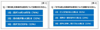 現代人の目の悩みを調査「疲れ目」「かすみ目」がツートップに