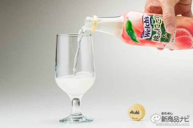 一般的な炭酸飲料は、ゴクリと飲み込めば口の中がサッパリとすることが多いが、この『Welch’s 桃のにごりスパークリング』は桃の甘さが広がったあと、トロリとした舌触りが感じられ、芳醇な香りがしばらく残り続ける。果汁10%とは到底思えない濃厚さを実現しているから不思議だ。
