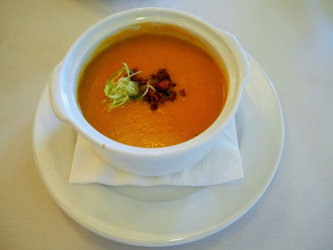 一皿目は、サラダまたは本日のスープのいずれかが選べます。こちらはかぼちゃのスープ。素材の甘みを生かした絶妙な味加減です。