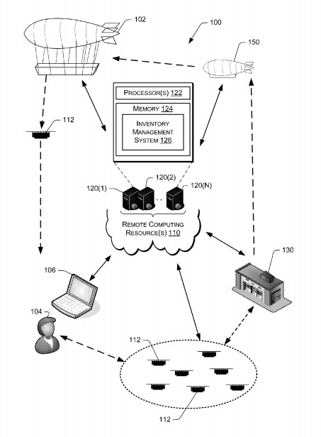 上空4.5万フィート(約14km)に大型の配送センターを浮かべておき、注文された商品をドローンで指定の場所に配達するという構想だ。