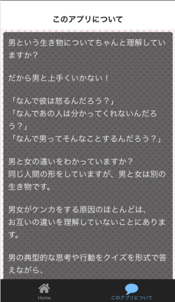 「なんで彼はわかってくれないんだろう?」「なんで男子ってあんなことするんだろう?」「最近彼とうまくいかない」とお悩みのアナタ、今回はそんなアナタに見ていただきたいアプリをご紹介します。