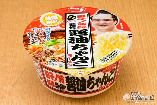 さて、そんな待望の日本人横綱を生み出した田子ノ浦部屋にサンヨー食品はカップラーメンの監修を依頼していたのは慧眼と言わざるを得ない。まさに狙ったかのようなタイミングで発売されたのが『サッポロ一番 田子ノ浦部屋監修 醤油ちゃんこ/塩ちゃんこ』(88gうち麺55g・希望小売価格 税抜180円・2017年1月発売)だ。