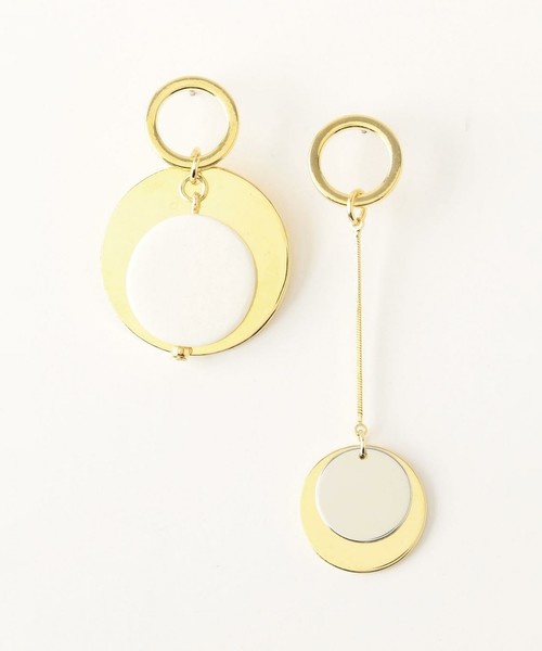 昨年から引き続き、大ぶりピアス&イヤリングの人気は継続中。それに加えて左右違うデザインをチョイスすれば、さらに旬ムードがアップ。