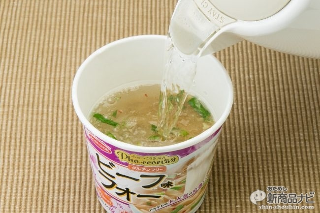 リニューアルされたのは、鶏だしフォー、ビーフ味フォー、トムヤムフォーの3種類だが、記者はビーフ味とトムヤム味を試食してみた!