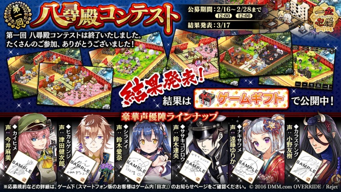 2/16~2/28の期間で行われていた独神様の八尋殿を紹介する「八尋殿コンテスト」の結果が3/17(金)に発表となります!