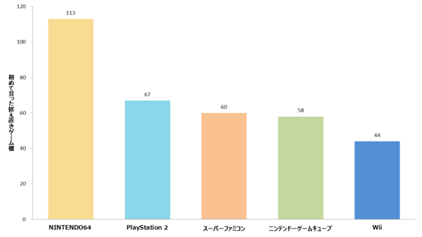 第1位は「NINTENDO64」、次に「PlayStation 2」、「スーパーファミコン 」という結果になりました。1996年に発売された「NINTENDO64」、小学生の時に買ってもらったという新社会人が多いのでしょう。