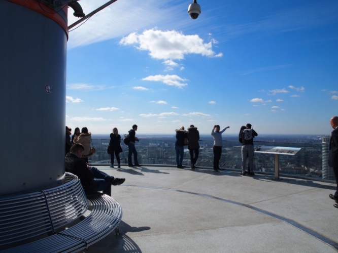 それが、高層ビルが立ち並ぶオフィス街にあるマインタワーです。地上56階、高さ200メートルとドイツで5番目の高さを誇るビルの屋上からは、フランクフルトの町はもちろん、はるか彼方まで広がる360度のパノラマを楽しむ事ができます。