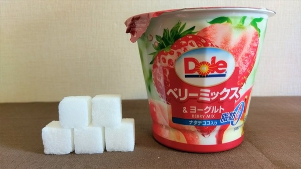 小腹が空いた時に、食後に、子供のおやつに。ヨーグルトは普段の食卓に欠かせませんよね。ダイエット中の方にもおすすめの脂肪分ゼロのヨーグルトも最近よく販売されています。今回は、脂質ゼロのDoleのヨーグルトに含まれる炭水化物の量を角砂糖で視覚化していきたいと思います。