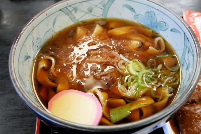 きしめんの最大の特徴でもある平打ち麺。麺が薄いことから通常の半分のゆで時間ということから、比較的早く提供されるのもひとつの特徴。濃いめの汁がしっかり浸透して麺からも汁の味をよく味わえます。