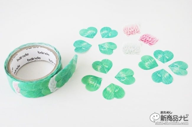 こちらは『bande マスキングロールステッカー クローバー』(税抜400円・2017年2月8日発売)。ハート柄が可愛らしくそのままでも、4枚を重ねても可愛い。