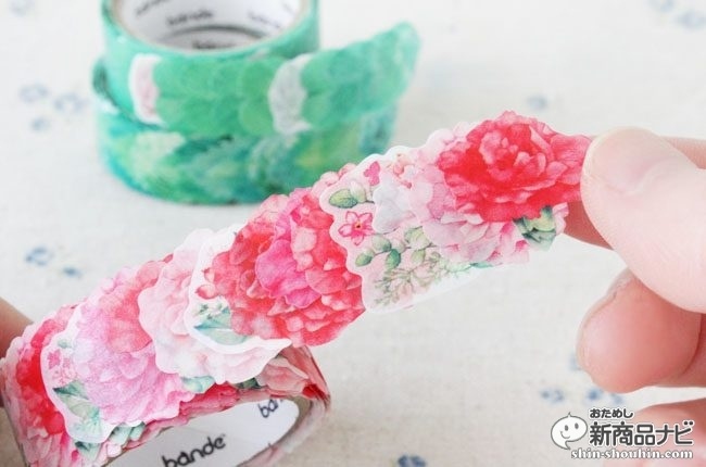 今回はその中より、もうすぐ母の日ということで『bande マスキングロールステッカー カーネーション』(20〜17×20mm/12柄200枚・税抜400円・2017年4月14日発売)をピックアップ。