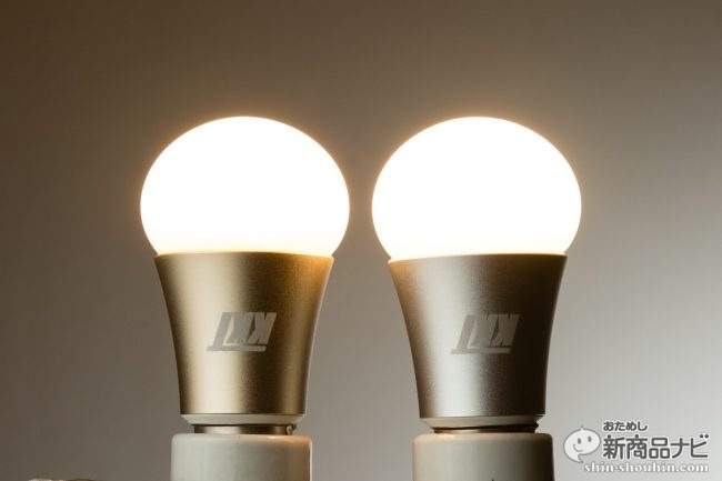 電球本来の性能、発光の美しさも完璧。おためし新商品ナビの担当カメラマンも「フリッカーが一切起きない」と太鼓判を押す。