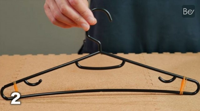 ハンガーの両サイドに、輪ゴムを巻きつけるだけで洗濯物が落ちにくくなります。
