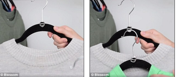 ハンガーにプルタブをこんな風につけると、重ねることが出来ます。すごい便利