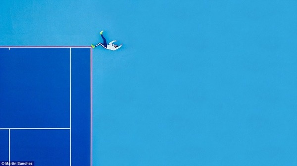 テニスコートの角を巧みに活用して撮影しています。