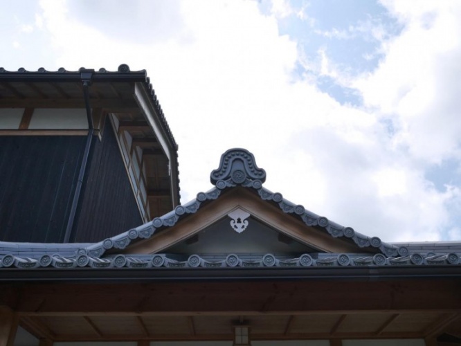 ハートを逆さにすると「猪目」になり、その名の通り、猪(いのしし)の目に由来して、魔除けや福を招く護符の意味合いがあり、伝統的な日本建築には必ずと言っていいほど使われています。約1400年前からお寺や神社などの建築装飾としていたるところに使用されており、災いを除き、福を招く意が込められています。