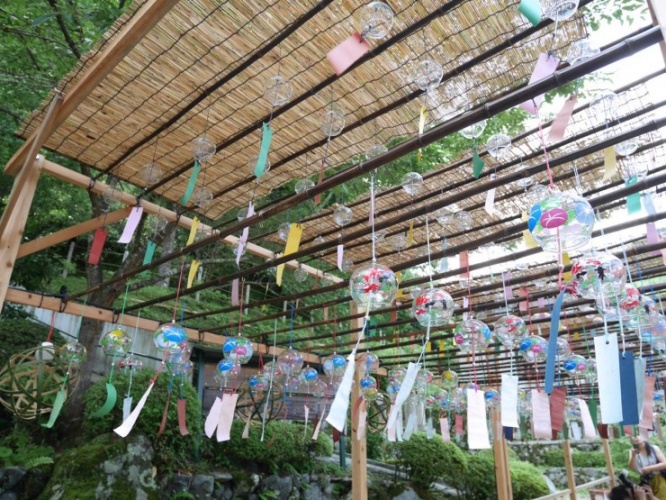 正寿院境内にて、7月1日~9月18日まで「風鈴まつり」が開催中です。正寿院は、京都市内と比べて夏は5度ほど涼しい避暑地。風鈴の見た目や音など、人間の五感「眼耳鼻舌身」で涼を感じて頂きたい思いから、風鈴まつりは始まったのだそう。