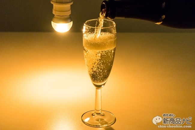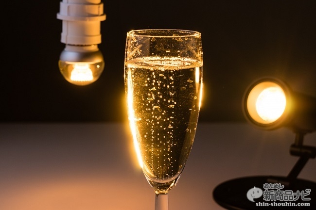 続いてスパークリングワインを照らしてみる。見事にプレミアム感が追加された。