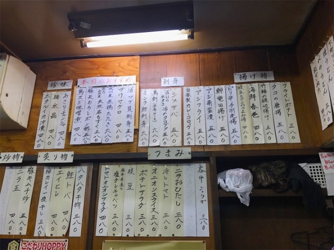 かつても使われていた大きな煮込み専用鍋に、新鮮で丁寧な仕事がされたモツ、そして勘定のためにつかっていたプラスチック製の板など、かつての常連客も安心して通える場所がそこにはある。