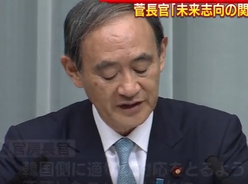 菅官房長官は会見で、「日韓双方が未来志向の関係を発展させようという努力をしている最中に、本件がそのような努力に水をさすことになりかねない」と懸念を表明した。