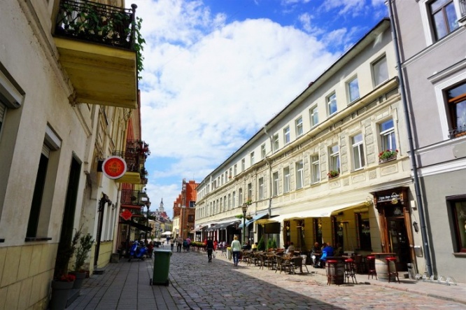 首都のヴィリニュスが中世の迷路のようであるのに対し、カウナスは長い一本道。新市街の独立広場から延びるメインストリート、ライスヴェス通りをまっすぐに歩いていくと、旧市街に到着します。