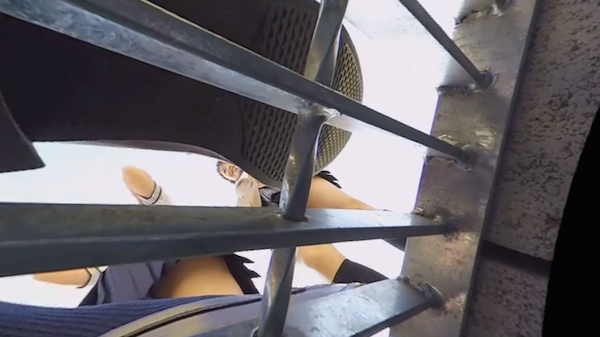 道路の下からスカートの中を覗くという、絶対に真似してはいけないその世界を体験できる映像。