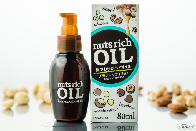 新発売の『ナッツリッチ 髪やわらかヘアオイル』(80mL・参考価格1,200円・2017年8月7日発売)は、ヘアオイル「柳屋 あんず油」でおなじみの株式会社柳屋本店(東京都中央区)よりこの夏デビューした新ブランド。20~30代の髪が硬くスタイリングに苦戦している人のためのヘアオイルだ。