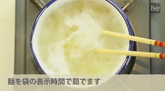麺を袋の表示時間でゆでます。
